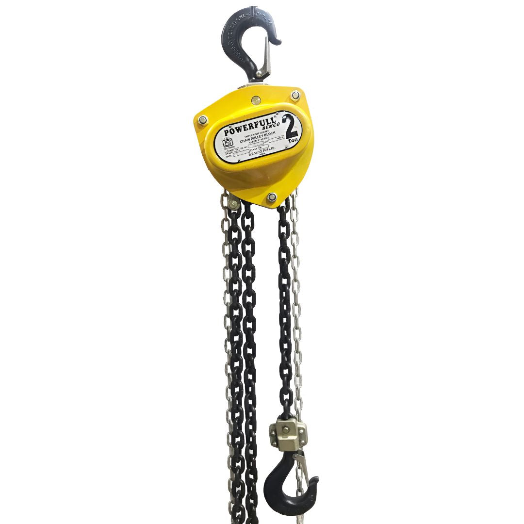 Bemco CPBSPS2T3M Heavy Duty Chain Pulley Block Super P Series 2Ton Capacity 3m Lifting Height, Made of Durable Alloy Steel, with Automatic Mechanical Load Brakes, Portable Easily Storable