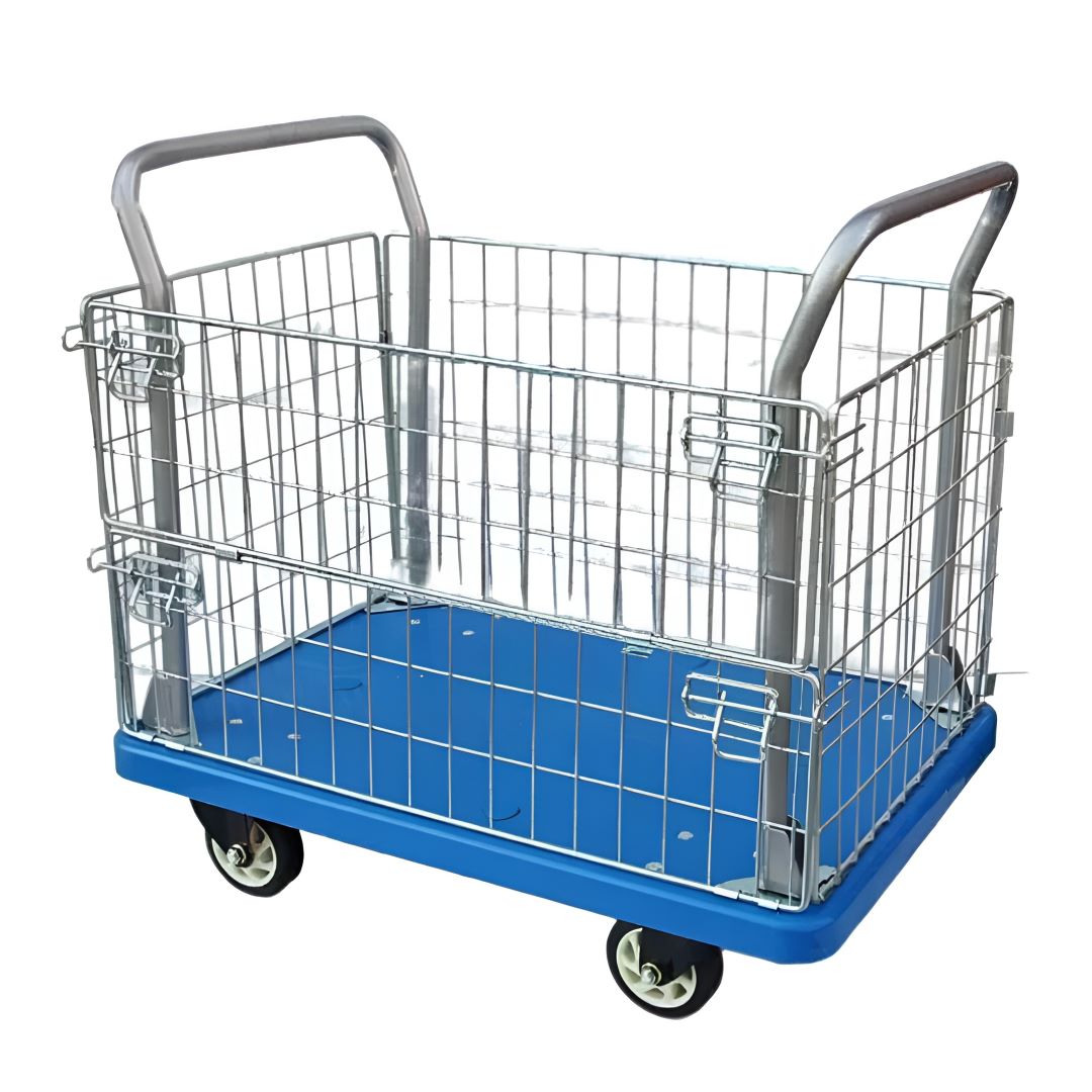 - The foldable side cage design allows for easy storage and versatility, making the trolley adaptable to various needs.