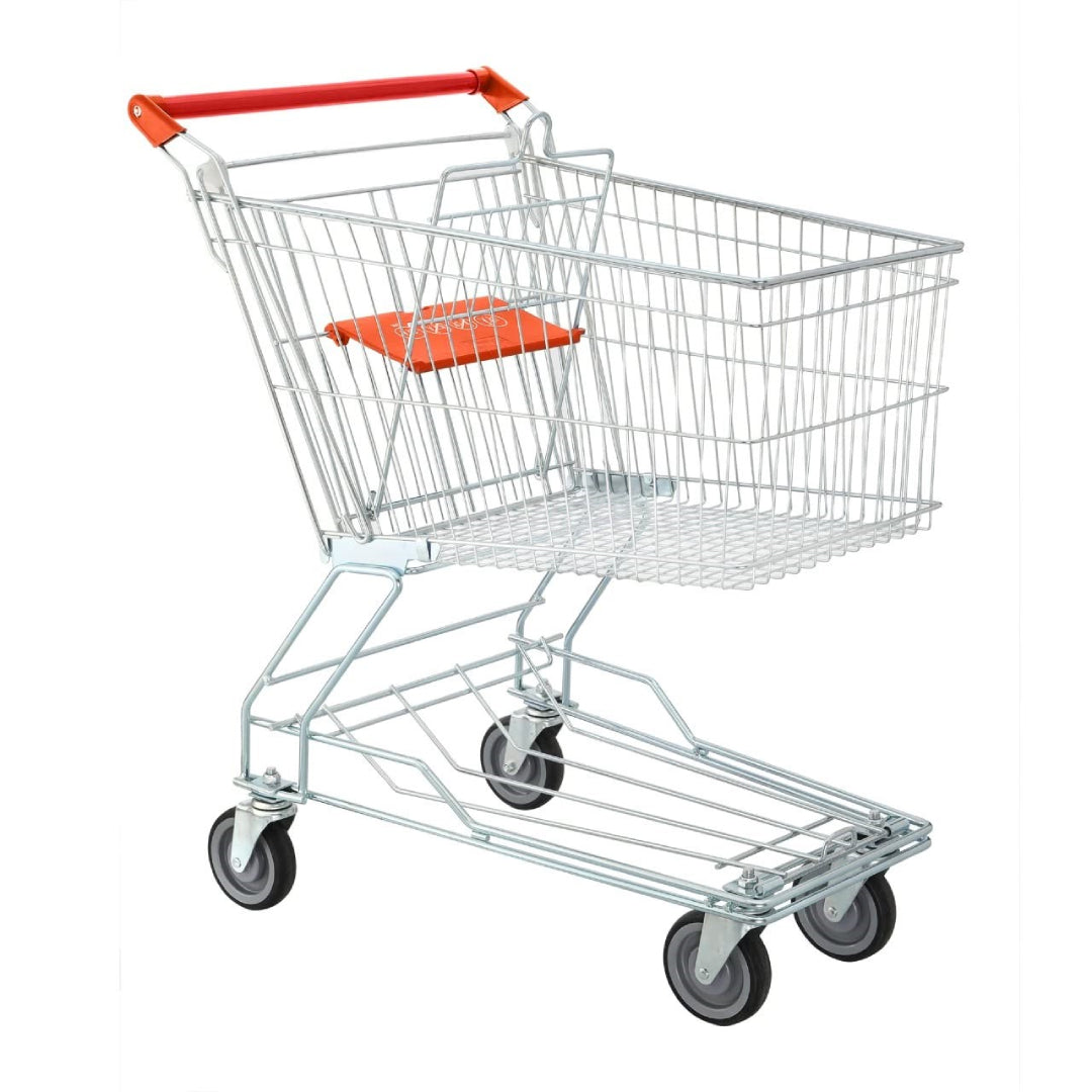 Bigapple STA100LTPR Metal Shopping Trolley Asian Style Cart 100L Capacity with 360 Degree Swivel Wheels, (860x510x960mm), Portable Easily Storable