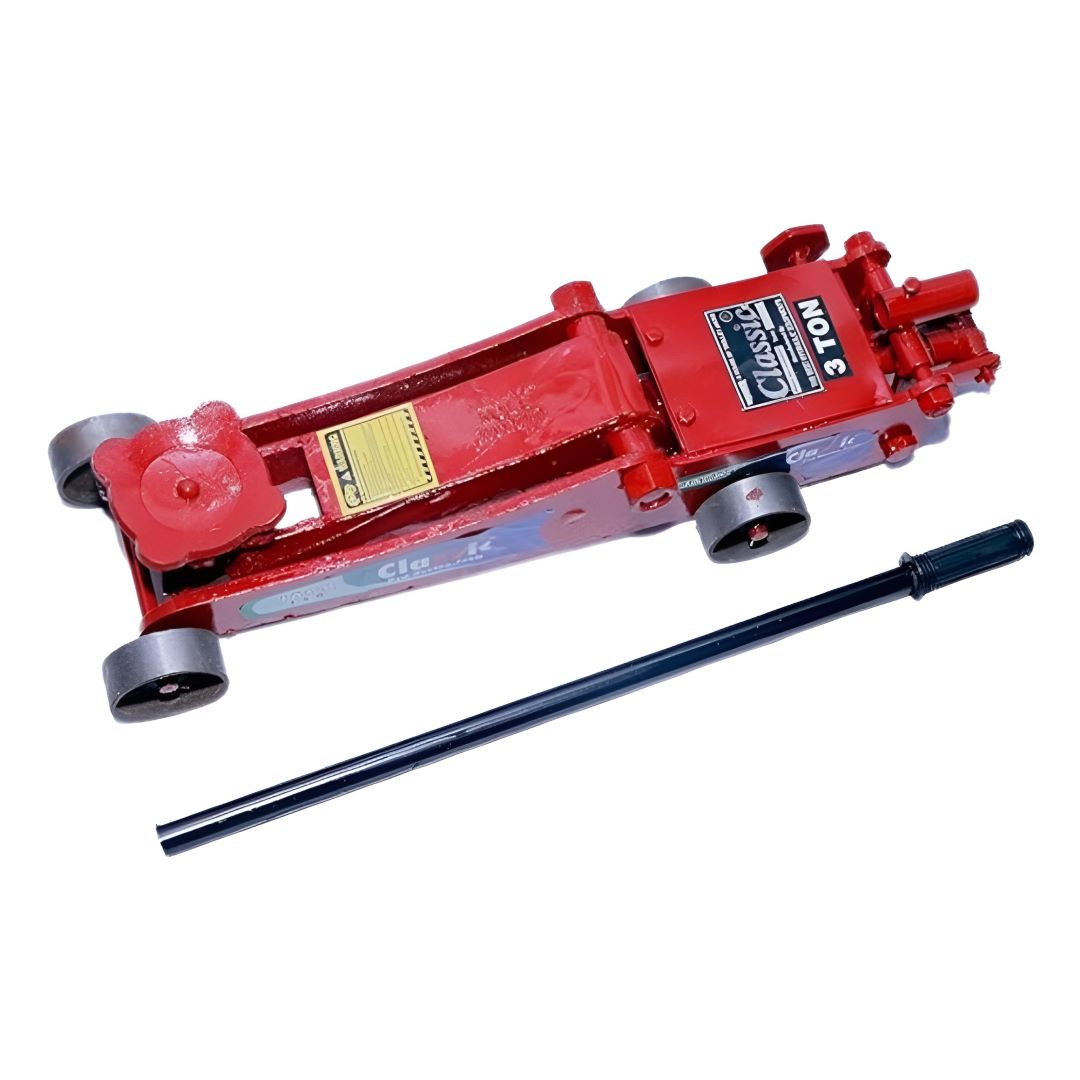Classic HTJ3TB Heavy Duty Hydraulic Trolley Jack 3000kg (3Ton) Capacity Made of Durable Iron, with Cast Iron Wheels, Red Colour, (711x216x152mm), Portable Easily Storable
