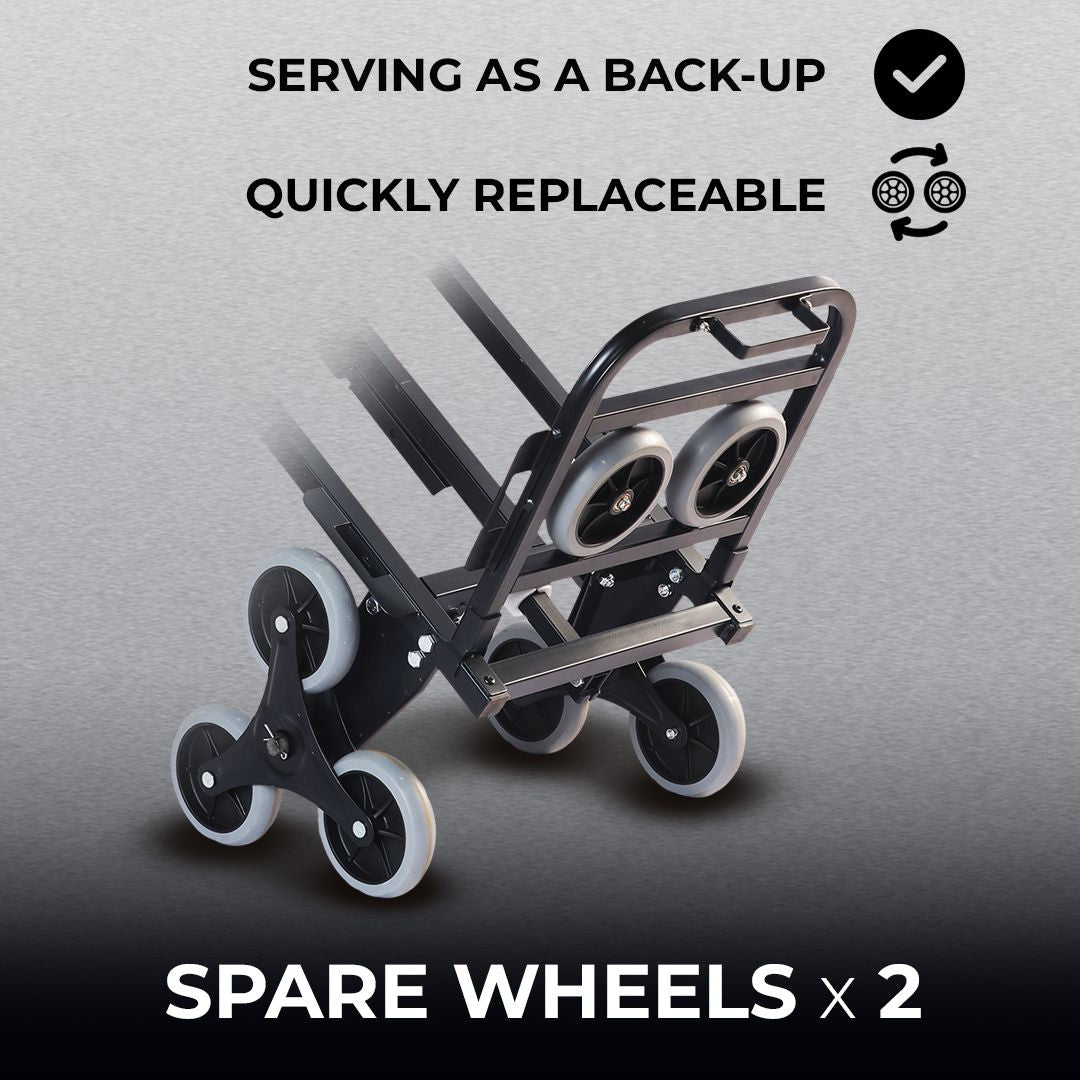| Special Features | Dual Usage – in Staircases & Flat Floors, 360* Rotation Back Support, 02 Extra Spare Wheels Free of Cost |