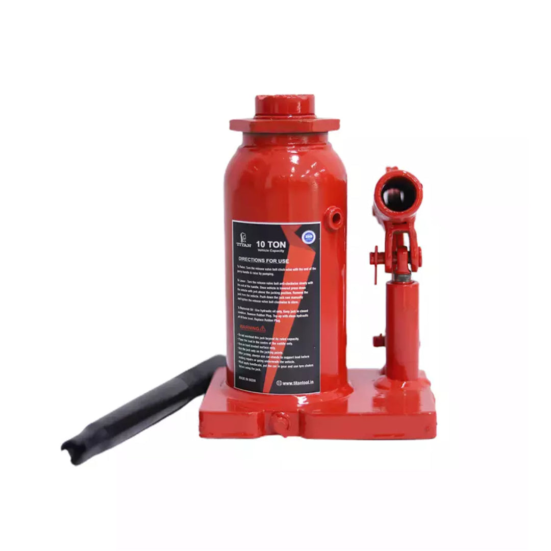 Titan HBJ10T Heavy Duty Hydraulic Bottle Jack 10Ton Capacity Made of Durable Steel, Red Colour, (110x138x395mm), Portable Easily Storable