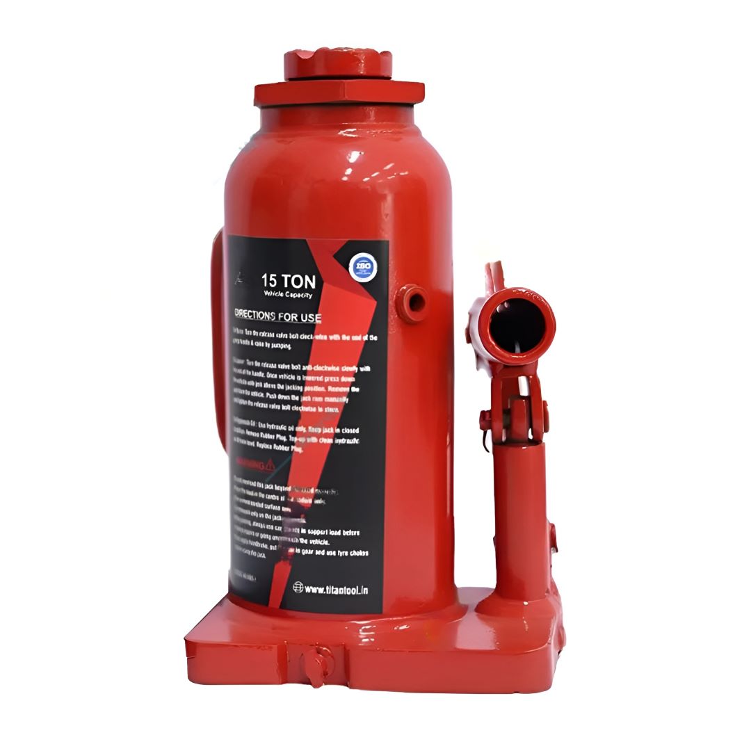 Titan HBJ15T Heavy Duty Hydraulic Bottle Jack 15Ton Capacity Made of Durable Steel, Red Colour, (116x136x236mm), Portable Easily Storable