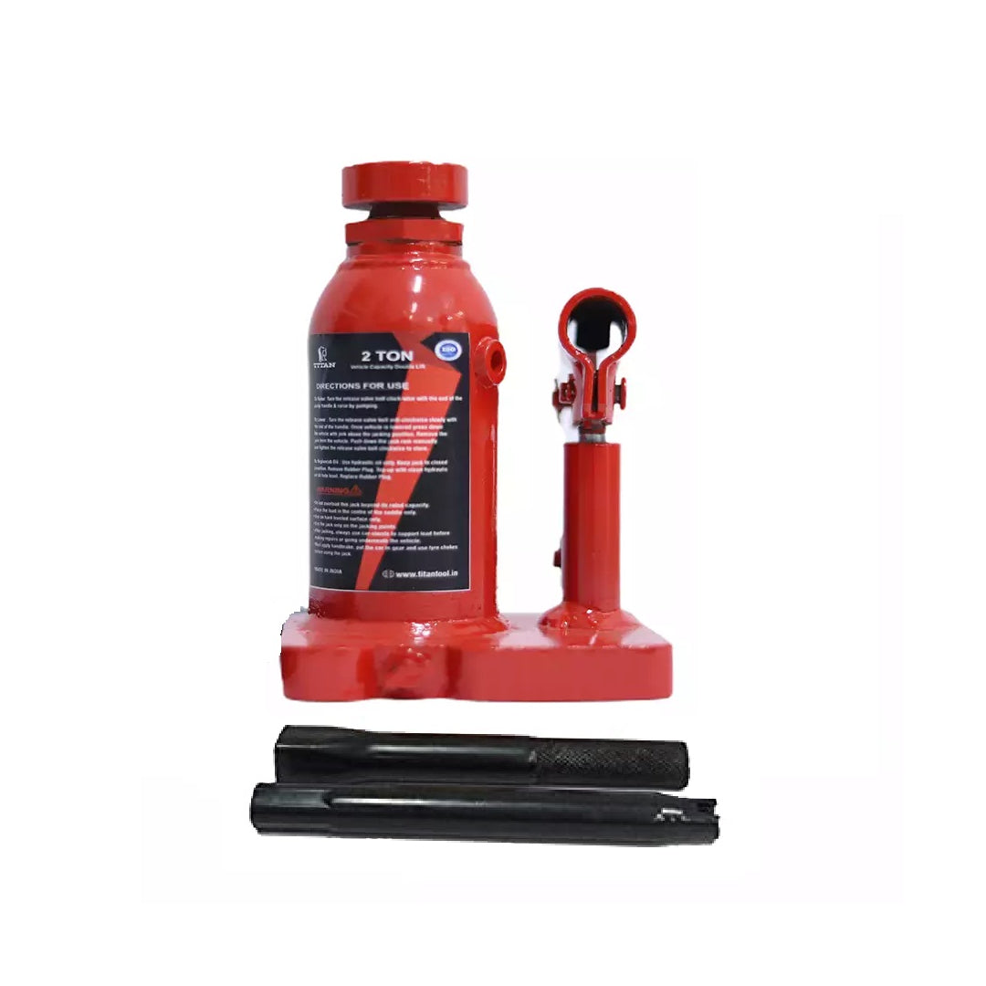 Titan HBJDL2T Heavy Duty Double Lift Hydraulic Bottle Jack 2Ton Capacity Made of Durable Steel, Red Colour, (85x110x155mm), Portable Easily Storable